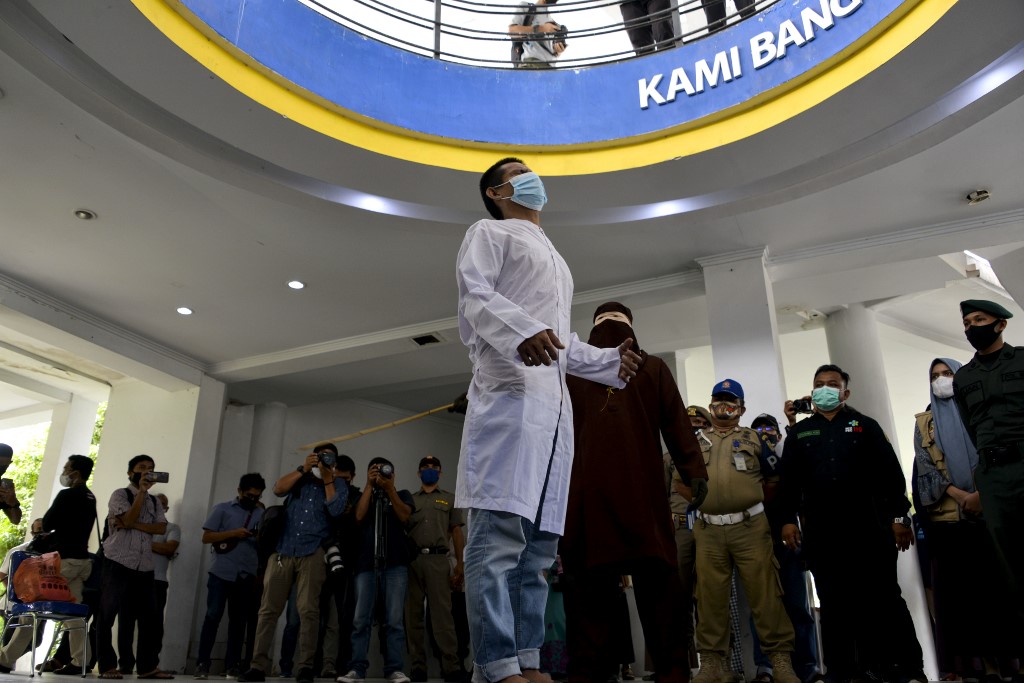 BANDA ACEH – Satu pasangan gay disebat di hadapan khalayak di wilayah Aceh di Indonesia hari ini, kata pegawai undang-undang.