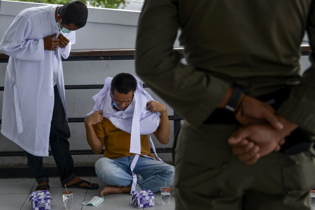 Hukuman itu dihentikan seketika dan kedua-dua lelaki berumur dalam lingkungan 20 tahun dibenarkan meminum air. Hukuman sebat disambung selepas itu.