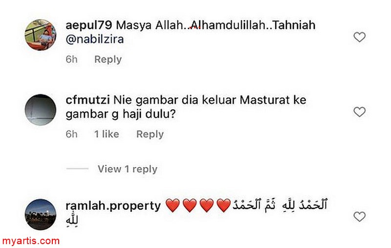 “Semoga pengorbanan mereka dlm usaha dakwah ini, hidayah tersebar seluruh Alam.. Allahumma Ameenn… hebattt Allah SWT.. Dakwah Tabligh,” tulis bekas pelakon, Azuan Mazlan yang meluahkan rasa respek terhadap pelawak, pengacara dan pelakon Nabil Ahmad serta isterinya, Zira Ayub yang kini kelihatan semakin mendekatkan diri dengan ilmu agama Islam.