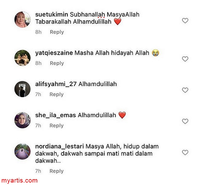 Meninjau di ruangan komen, rata-rata peminat mendoakan agar pasangan ini yang dikurniakan tiga cahaya mata itu terus kekak istiqomah untuk melakukan kebaikan.