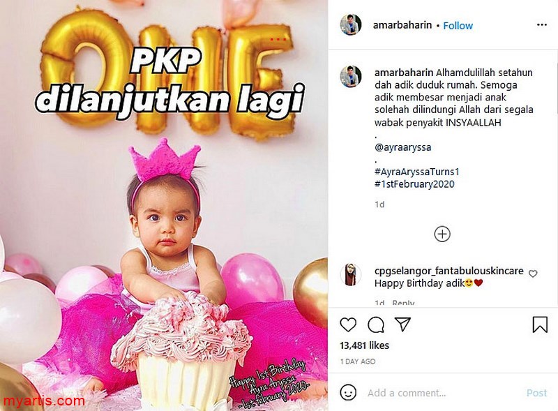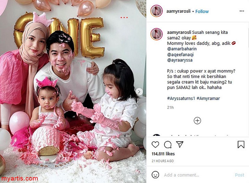 Pasangan Amyra Rosli dan Amar Baharin baru-baru ini telah meraikan ulang tahun kelahiran anak kedua mereka, Ayra Aryssa yang kini genap usia setahun.