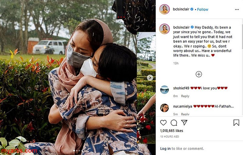 “Kami cuba dengan situasi yang baru ini. Oleh itu, kamu jangan risau tentang kami. Semoga kamu bahagia di sana. Kami sangat merinduimu,” tulis penyanyi dan pelakon terkenal Indonesia, Bunga Citra Lestari menerusi laman Instagram.