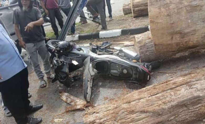 Kayu balak bergolek di lampu isyarat, penunggang motosikal nyaris maut