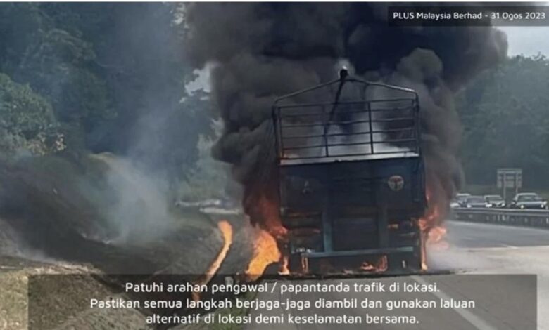 Lebuhraya PLUS arah utara sesak 13km akibat kebakaran sebuah treler