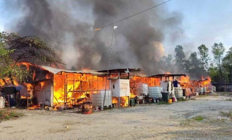 Api merebak pantas, penghuni tinggal sehelai sepinggang DARO: Dua blok kuaters rumah pekerja di sebuah tapak pembinaan Batang Muara Lassa,…