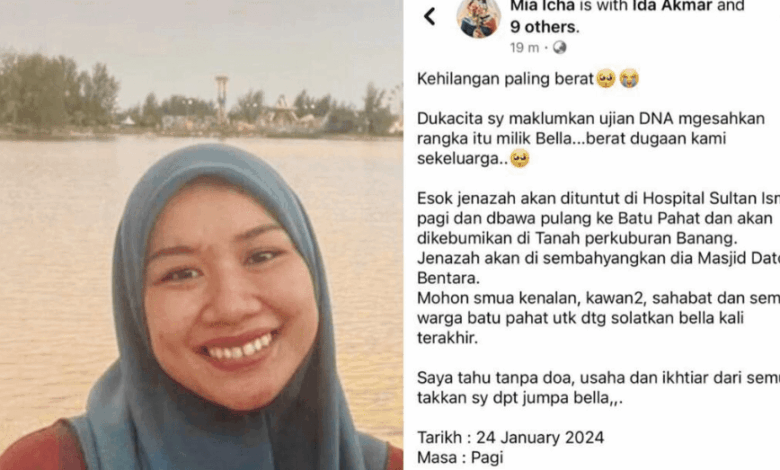 BATU PAHAT – Kakak Bella mengucapkan selamat tinggal buat adik tersayangnya, Mira Sharmila Samsusah, 32, yang disahkan mati dibunuh susulan…