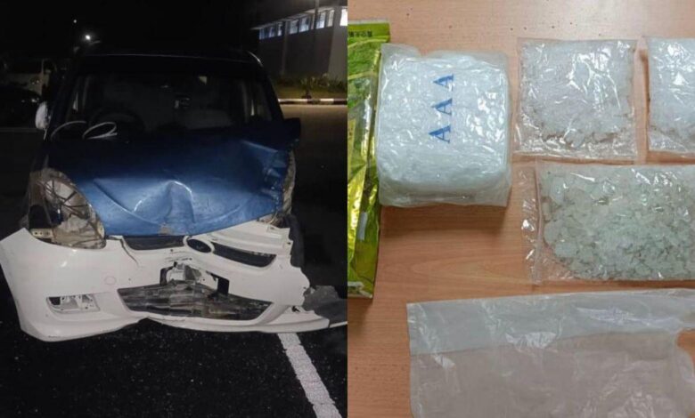 Kereta bawa 1.79 kg syabu terbabas rempuh tiang elektrik