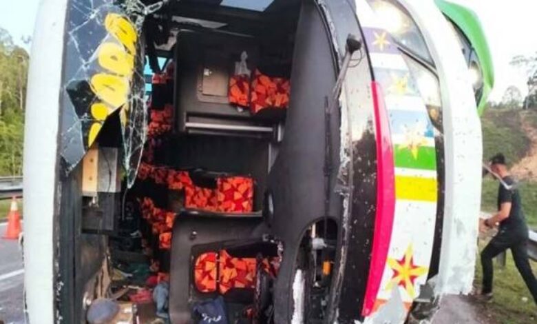 Kemalangan Maut di LPT2, bas terbabas seorang maut sembilan cedera