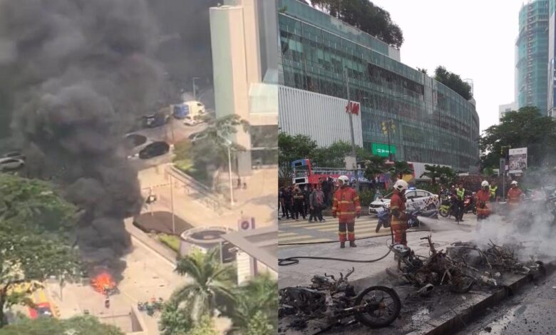 Deretan motosikal dan skuter terbakar hadapan Suria KLCC sebentar tadi [VIDEO]