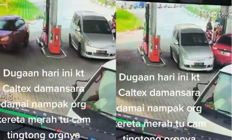 PETALING JAYA- Video tular pemandu kereta jenis Proton Saga mengisi minyak sebelum merempuh kenderaan pelbagai guna (MPV) Perodua Exora di…