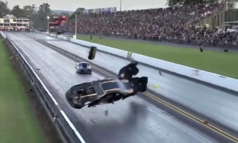 Kereta ‘melayang’ ke udara, pelumba drag maut