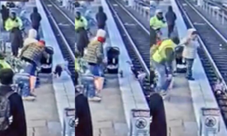 Wanita tolak budak 3 tahun jatuh landasan tren [VIDEO]